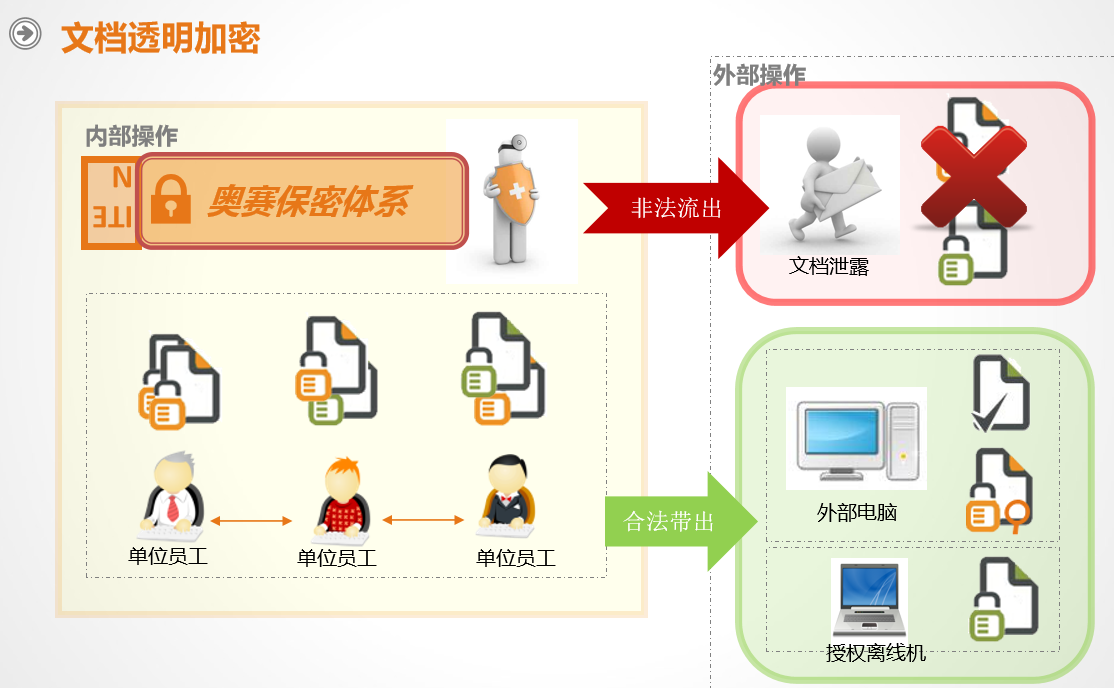奧賽云盾采用先進(jìn)的文件內(nèi)核加密技術(shù),在無需人工干預(yù)、不影響員工辦公的前提下對數(shù)據(jù)進(jìn)行全程智能加密,在內(nèi)部環(huán)境可正常使用,脫離內(nèi)部授權(quán)環(huán)境則無法打開。根據(jù)實(shí)際業(yè)務(wù)需求可使用打開加密、修改加密、手動(dòng)加密、智能加密等靈活多樣的加密策略。