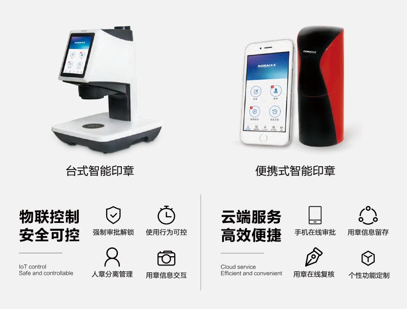 ▲臺(tái)式智能印章機(jī)章盾體現(xiàn)為更嚴(yán)格的使用要求和實(shí)時(shí)記錄用章文件和過(guò)程;便攜式智能印章機(jī)信印體現(xiàn)為更靈活的使用模式和更全面的用印過(guò)程記錄。