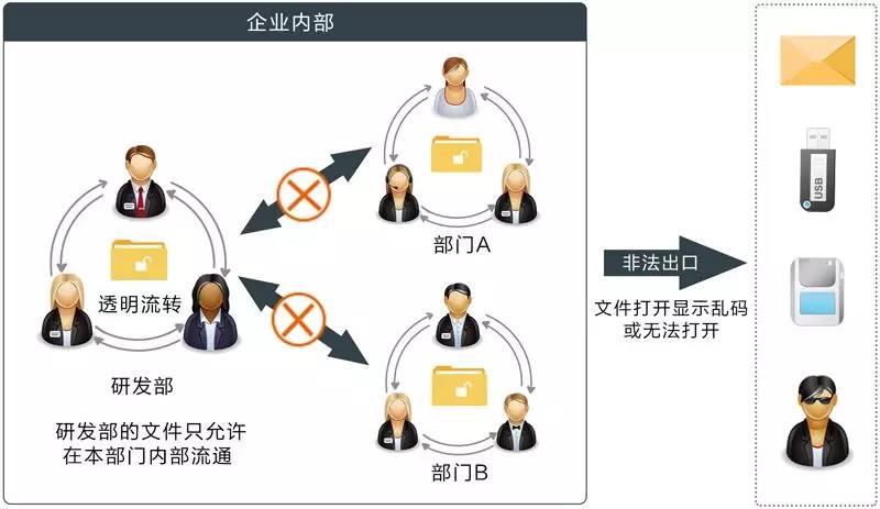 奧賽云盾采用驅(qū)動(dòng)層加密技術(shù),進(jìn)行文件加密不改變員工操作習(xí)慣、不改變文件格式、不封閉公司網(wǎng)絡(luò)、不封閉外設(shè)端口,內(nèi)部流通自由正常。 加密文件在未授權(quán)的情況下脫離企業(yè)網(wǎng)絡(luò),文件就無(wú)法正常訪問(wèn),形成“對(duì)外受阻,對(duì)內(nèi)無(wú)礙”局面!有效保障企業(yè)的數(shù)據(jù)安全。