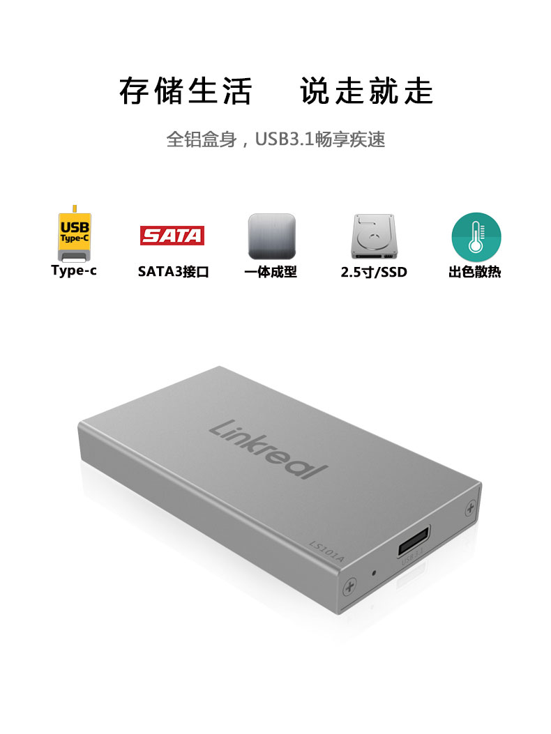 ? ? ? ?展瑞信息技術【linkreal】將于近日正式推出LS101A和LS201A兩種型號的高速移動硬盤盒。兩款硬盤盒均采用USB3.1 Type-C 接口,理論數(shù)據(jù)傳輸速度達10Gbps,為企業(yè)和個人移動數(shù)據(jù)存儲提供高速,安全,便攜的服務。
