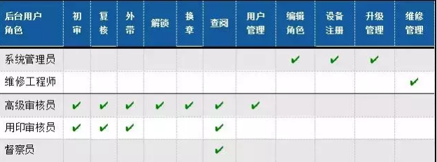 同時,普通用章人角色因為無需管理智能印章機設備,可以對應多個公章。督察員角色的設立提供了一個獨立第三方的用印監(jiān)管角色,督察員無權申請或者審批公章的使用,但可以查閱到公章的用印歷史記錄,以確保公章的使用全程收到監(jiān)控。