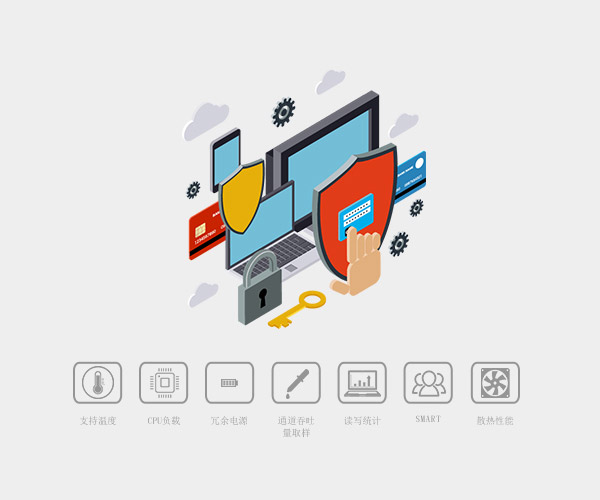 支持硬盤、溫度、CPU負載、冗余電源、通道吞吐量取樣、讀寫統(tǒng)計、SMART等多種監(jiān)控組件,同時對硬盤、風扇、電源等重要部件故障會通過電子郵件、LED燈、高音音頻等方式給管理員以報警提示,以便及時處理存儲設備故障