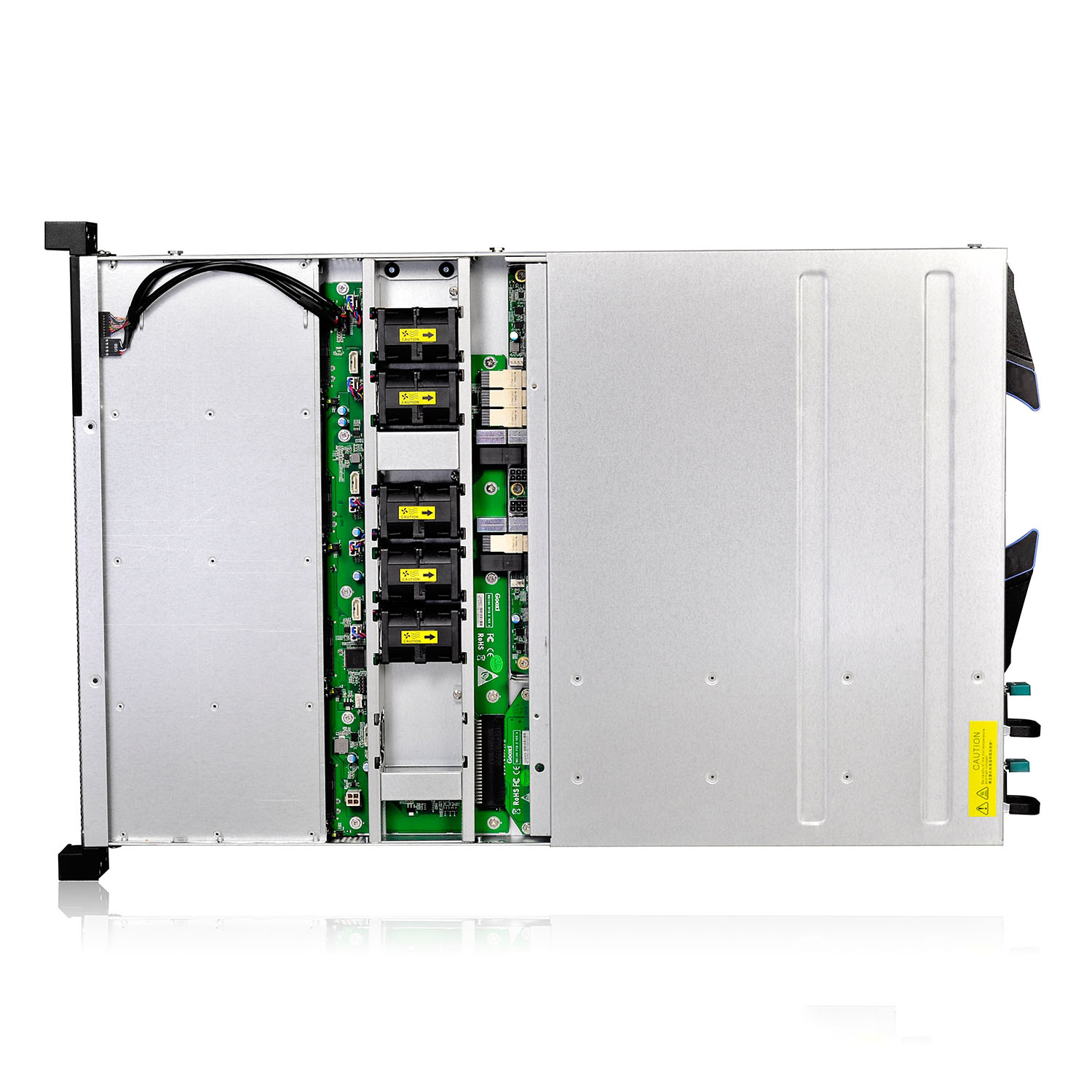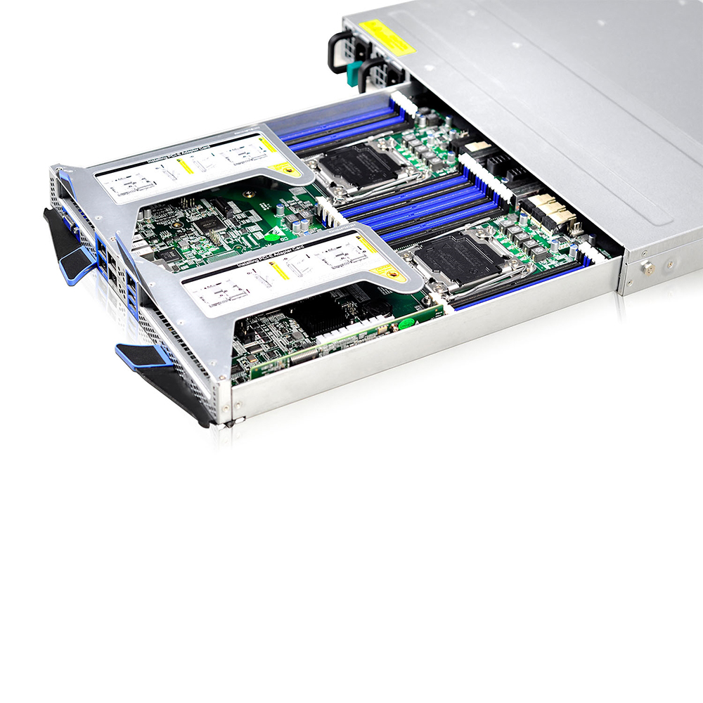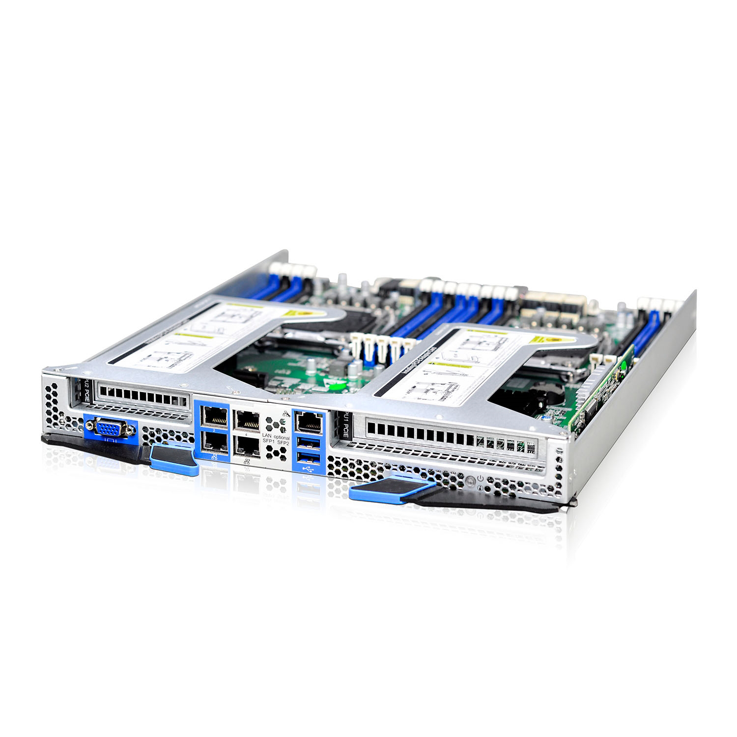 在標(biāo)準(zhǔn)4U機架高度里部署1個雙路控制器,采用2顆并行排列的Intel? Xeon? E5-2600 V3/V4系列處理器,搭配1個內(nèi)置高速M.2 PCIE SSD。整機性能較傳統(tǒng)4U機架服務(wù)器系統(tǒng)提升數(shù)倍,適用于虛擬化桌面、大規(guī)模圖形渲染、云平臺等對空間、性能要求較高的大規(guī)模網(wǎng)絡(luò)應(yīng)用環(huán)境。