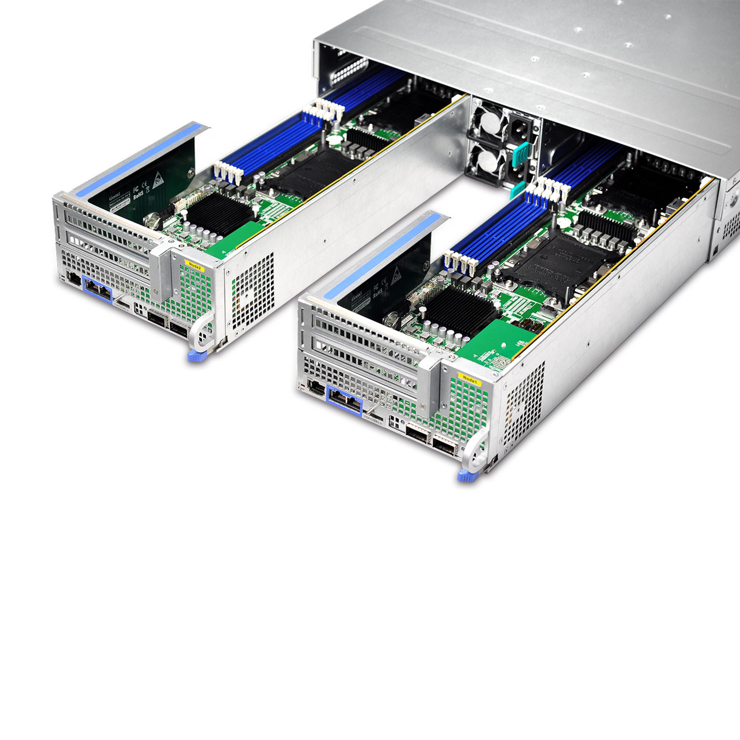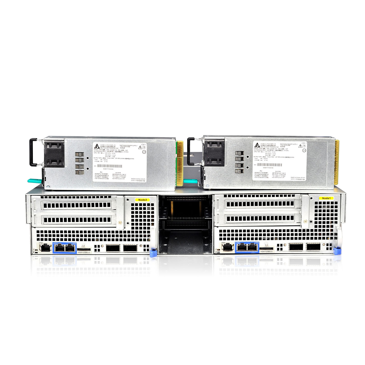 系統(tǒng)支持2個易插拔高性能雙路服務(wù)器節(jié)點