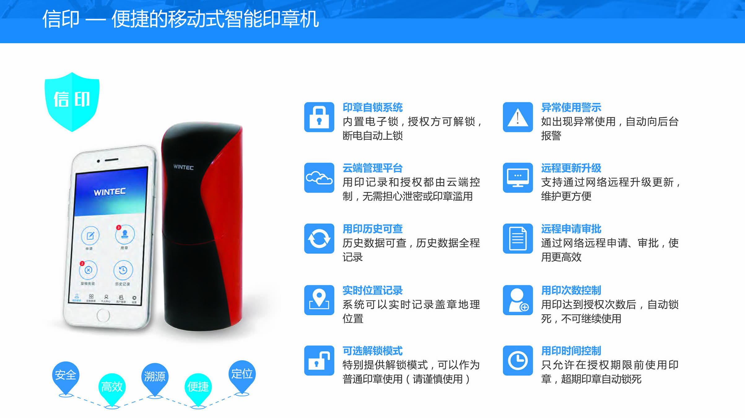 位置定位,異常報(bào)警,印章外帶安全可控;
